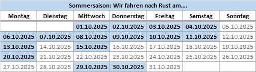 Wir fahren an den Daten, welche blau hinterlegt sind:
